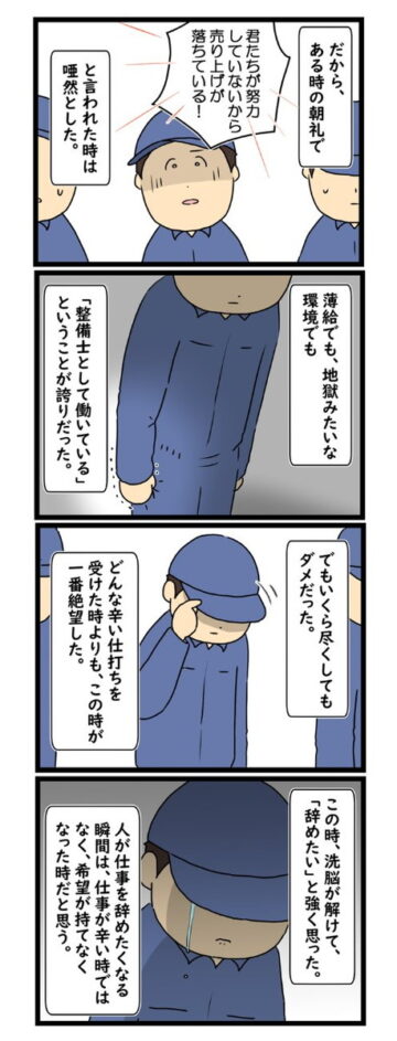 【漫画】「口答えすんな!」怒鳴る工場長と壊れていく先輩… 整備士が絶望した“地獄の職場”に「これが日常なの?」