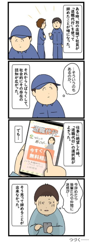リス山さん「当時、『退職代行』が話題になっていて、フォロワーさんに話を聞いてみたいと思い、エピソードを募集しました。今回の漫画は応募されてきた方にインタビューさせていただき、作成した漫画です」