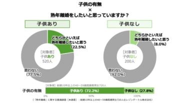 結婚して10年以上になる既婚男女を対象とした「熟年離婚」に関する意識調査の結果が発表されました。子どもの有無で、熟年離婚の願望に差が……?