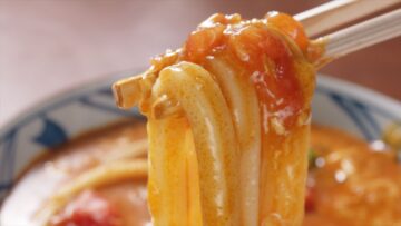 讃岐うどん専門店「丸亀製麺」が、俳優の松岡昌宏さんと共同開発した人気メニュー「トマたまカレーうどん」シリーズの新作「海老カツトマたまカレーうどん」を4月21日に販売開始!