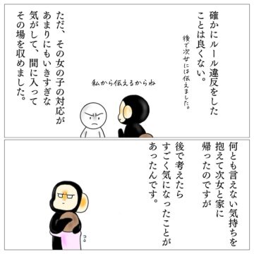 小学生の子たちと遊んでいるとき、ゲームに負けたくなくてルール違反をしてしまった5歳の娘。すると1人が「そんなんで社会でやっていけると思ってるの!?」と娘を強く注意して…という内容で、読者からは「ハッとさせられました」「子どもって大人のことをよく見ていますよね」「子どもたちのためにも、大人がしっかりしなくては」などの声が上がっています。