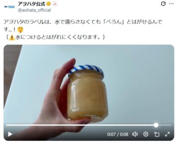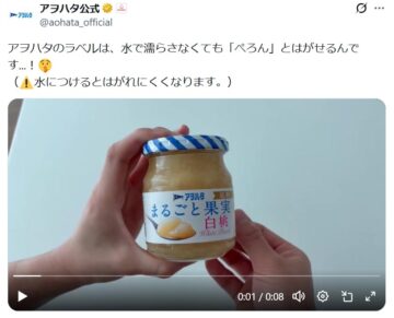 「アヲハタ」の公式「X」アカウントが、瓶のラベルを剥がす際の注意点について投稿し、SNS上で反響が起こっています。