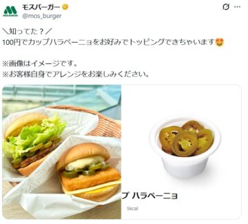 「この量で100円は安い」モスバーガーの“追加トッピング”にSNS「辛いけどうまい」「別オーダーできるの神」