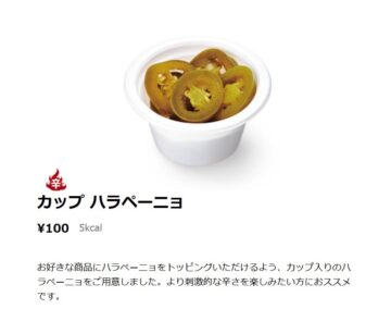 100円でカップハラペーニョをお好みでトッピングできちゃいます🤩※画像はイメージです。
