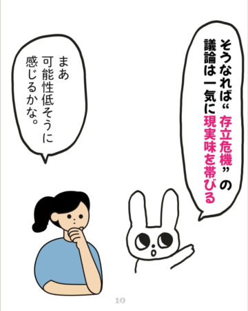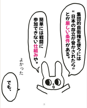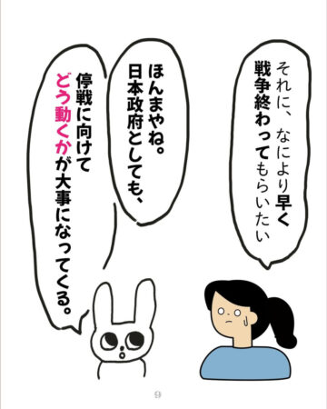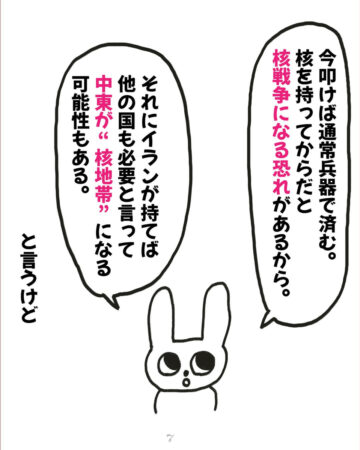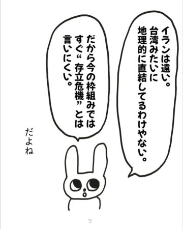 あみなさん「戦争ってこうやって起きるんだと実感しました。戦争が起きる前に、核の持ち込みに関する漫画を描きました。詳細はインスタグラムをご覧いただければと思いますが、『核を持つよりも、攻める理由を与えないことが大切だということ』『日本はエネルギーや食料自給率が低いので、その自給率を上げることの優先度が高いこと』などを伝えています。しかし、コメント欄には、『核が1番の抑止』という意見がいくつも寄せられました。