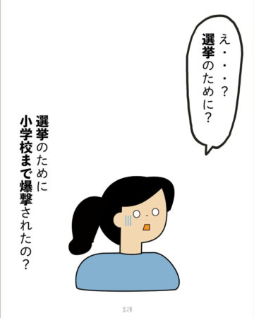 あみなさん「2026年2月8日、衆議院議員選挙の投開票結果に落胆していました。現政権は台湾有事発言があったし、憲法改正も進めたがっていましたから。選挙後、エプスタイン文書のことが騒がれていて、その目をそらすためにイランが攻撃されるかもしれないとうわさで聞きました。『うそでしょ?』と思っていたら、本当に攻撃されました。ラジオニュースのコメンテーターは、11月に行われるアメリカの中間選挙を前に、下がっていたトランプ政権の支持率を上げるためとも言っていました。