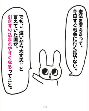 日本はアメリカと同盟を結んでいます。アメリカに『手伝って』と言われたら、断れるのかなとも思いました。もし、日本も戦争に協力するようなことがあれば、日本も当事国になります。これまで、憲法にピンとこなかった方々も、考えざるを得ない状況になると思いました。『戦争を通じて日本にどのような影響があるのか』を伝えれば、普段は政治に興味のない方でも考えるきっかけになるかも、と思ったんです」