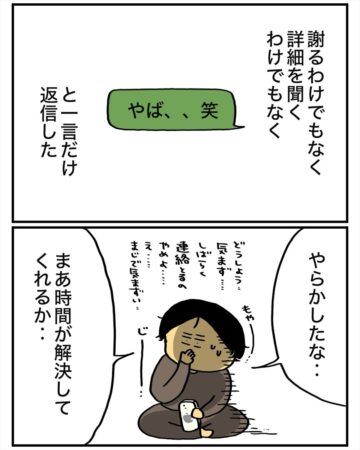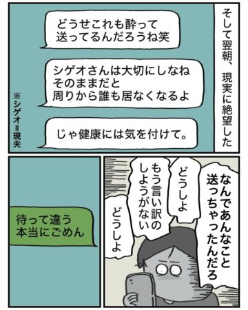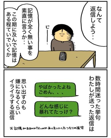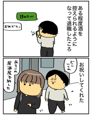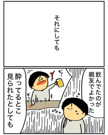 エクボさん「『酒の問題じゃないだろ、これ』『酒のせいにして逃げるな』『酒と親友に謝れ』などですね。もちろん共感コメントや、親友側の方からのコメント、励ましのコメントもあります。ちゃんと読んでいます。それでメンタルを保って描き続けられています。ありがとうございます!」