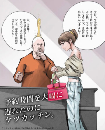 TAKUOさん「キャンセル癖のあるお客さんですね…。キャンセルは誰にでもあることなので、キャンセルすること自体は仕方がありません。しかし、キャンセル『癖』があるお客さんは、本当に困ります。単純にその時間の売上が失われるだけでなく、本来であれば他のお客さんのご予約を取れたはずなので、影響が大きいんです。僕のお客さんでも、これまでに1人だけキャンセル癖のあるお客さんがいらっしゃいました。5回ご予約をいただいても、1回来店されればいい方というぐらいで…。約6年ほどのお付き合いがありましたが、最終的にはやむを得ずサロンへの出入りをお断りさせていただきました」
