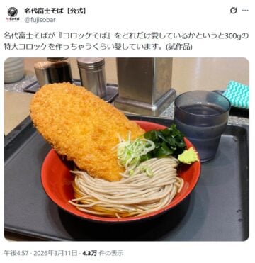 立ち食いそばチェーン「名代富士そば」の「X」公式アカウントが、スタッフの「わんぱくぶり」が分かる1枚を投稿しています。