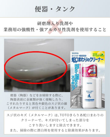(3)便器、タンクに研磨剤入り洗剤や業務用の強酸性、強アルカリ性洗剤を使用する