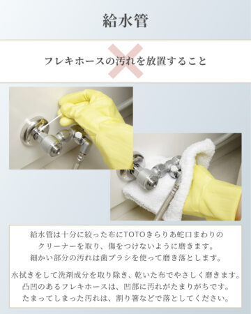 凹凸のあるフレキホースは凹部に汚れがたまりがち。