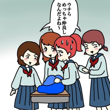 あやこさん「今年から長女が中学生になったのですが、やはり年ごろの女の子ということで人間関係を心配しておりました。そのことに思いを馳せていくうちに、私の中学生時代にあったクラスメートの謎の行動を思い出したので、漫画にしてみました」