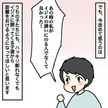 中学生の頃、クラスメートから「あの子、なんかムカつくから一緒に無視しよう」と誘われました。その言葉に驚き…という内容で、読者からは「イジメだ」「きっぱり断ってえらい!」などの声が上がっています。