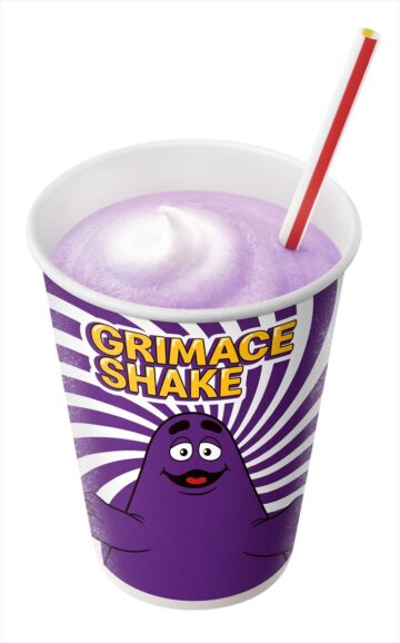 同商品は、おっちょこちょいな性格で、紫のボディーと眠たげな表情、太い眉毛がトレードマークのキャラクター「グリマス」の大好物「マックシェイク」シリーズの一品。グリマスを象徴する紫色の見た目が特徴的で、ブルーベリーヨーグルト味になっています。2024年10月に初登場し、これまでに2回、期間限定で販売されましたが、人気のため売り切れが相次ぎました。