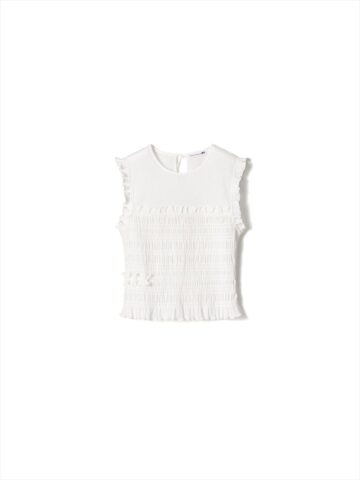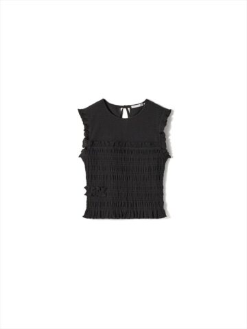 同ブランドのセシリー・バンセンさんは、以前から子ども服にも興味を持っていたといい、今回、初めてガールズラインを発表。同コレクションでは、大人とのペアリングスタイルも楽しめるフリルTシャツやワンピース、シャーリング加工が施されたトップスやスカートなどがラインアップされており、単品、またはセットアップとしても楽しめます。伸縮性のある素材などを採用し、着心地のよさにもこだわっているということです。