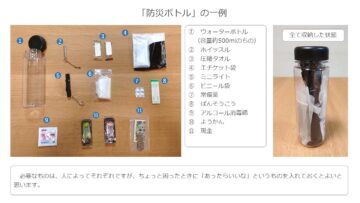 この投稿では「災害は、いつどこで起こるか分かりません。そんな災害のときのために、私は外出する際、各種グッズをウオーターボトルに入れた『防災ボトル』を持ち歩いています」と投稿。防災ボトルの作り方について、次のように紹介しています。