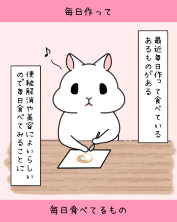 便秘解消や美容にいいらしいと聞いて、作者の女性が毎日作っている物。その食べ物とは…という内容で、読者からは「自宅で作れるんですね」「おいしそう!」「今度作ってみたい」などの声が上がっています。