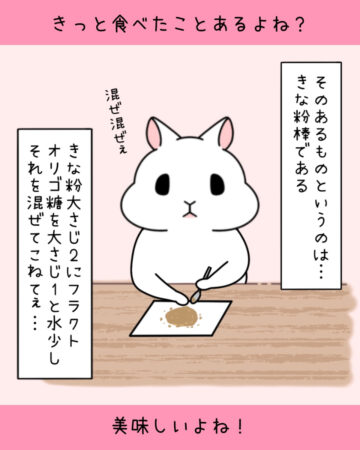 Miiiさん「きな粉は大さじ2、フラクトオリゴ糖は粉末なのですが、こちらは大さじ1。この量で作っています。作るときのコツは水分を入れすぎないことくらいで、後は材料がひとまとまりになれば食べやすいサイズにカットするだけです。誰でも簡単に作れます!」