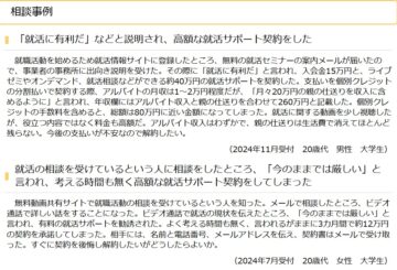 このような場合、単なる契約トラブルにとどまらず、クレジット契約や今後の信用情報に影響を及ぼす可能性もあります。結果として、就職活動の支援を受けるはずが、長期的な金銭的負担や信用リスクを抱える状況につながるという危険性があります。
