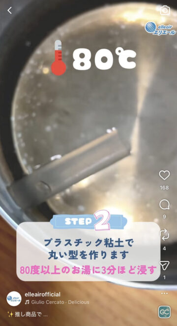 (2)プラスチック粘土を80度以上のお湯に3分ほど浸す。