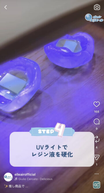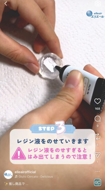 (6)UVライトでレジン液を硬化。