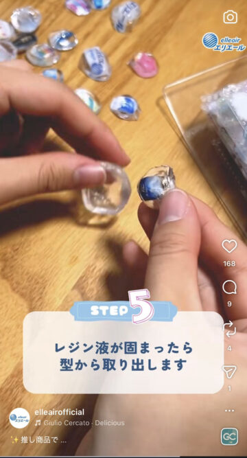(7)レジン液が固まったら型から取り出す。