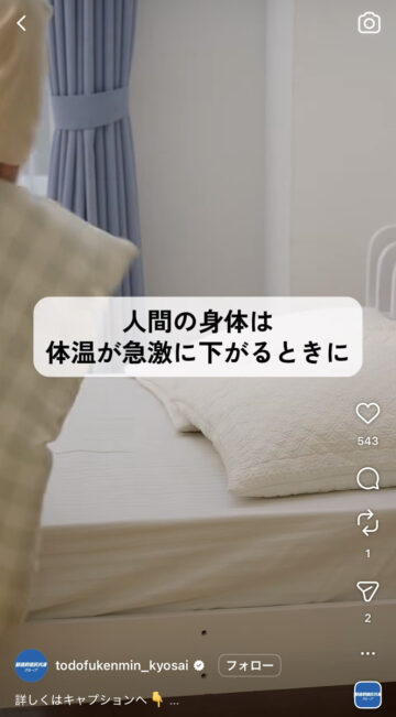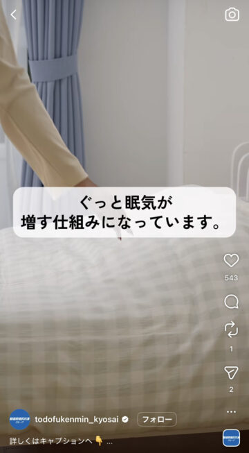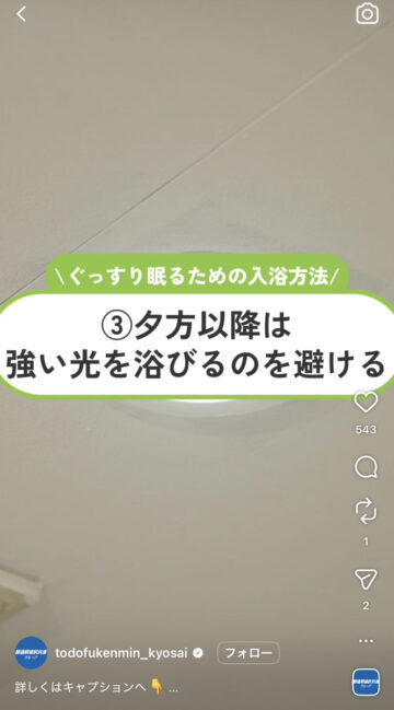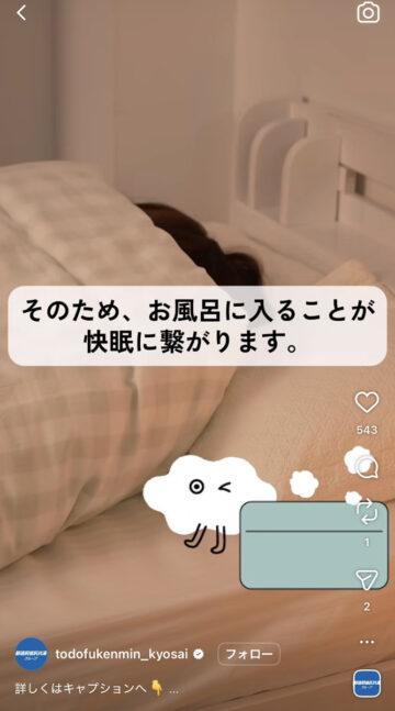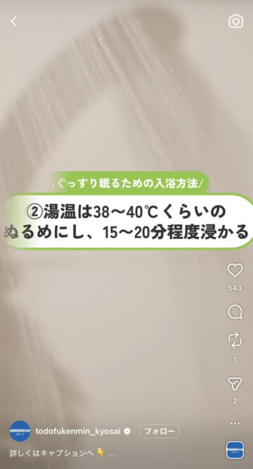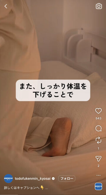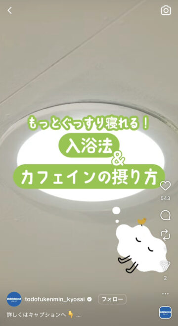 夜にぐっすり眠る方法について、都道府県民共済グループの公式インスタグラムアカウントが紹介しています。