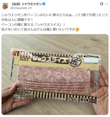 ニッポンハム「シャウエッセン」の公式「X」アカウントが、ベーコンのように使える「シャウスライス」を紹介しています。