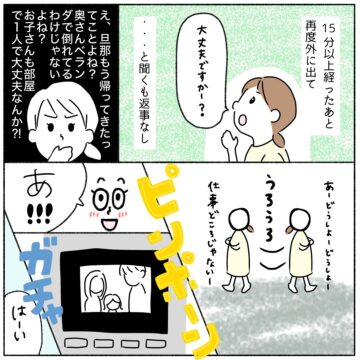 在宅勤務中に、窓から「トントン」という音が。誰かが棒で窓をたたいていました。「何事?」と思い外に出てみたら…という内容で、読者からは「危ないですね」「どうなっちゃうの~」などの声が上がっています。