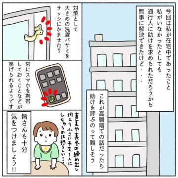 あおこさん「締め出された経験はありませんが、子どもが窓の鍵を開けて、1人でベランダに出てしまったことはあります。アパートの1階に住んでいたので転落の心配はなかったのですが、かなりゾッとしました」