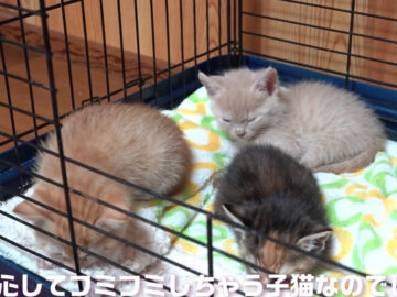 子猫3きょうだいが全力遊び!→疲れて寝落ちしちゃった子猫が起きたら…「みんなどこニャ?」寂しがる姿に視聴者がキュン