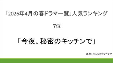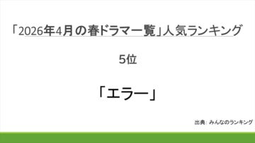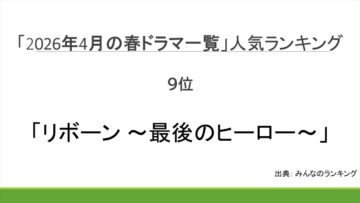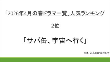 2026年4月期のドラマの中から、ユーザーが投票して決める「『みんなのランキング』2026年4月の春ドラマ一覧」人気ランキングの現時点での結果を紹介します。