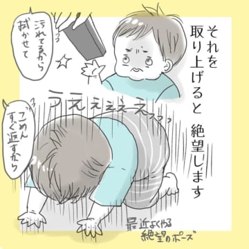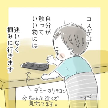 シカさん「だめと理解した上で好奇心で触りに行きたがるときは、やはりあります。なので、あまりだめだめと言うのも今の月齢ではやめた方がいいとも思うので、いかに、息子の目につかないようにするかが親の課題かなと思います。この漫画を描いた後ですが、あまり顔色を伺わせてしまうのもよくないので、『だめ』の使いどころをきちんと考えないとなと思いました」