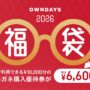【福袋】「OWNDAYS」メガネ購入優待券“1万円”封入 6600円 先行販売を開始2025.10.30メガネ・サングラスの製造販売を手掛ける「OWNDAYS(オンデーズ)」が、「OWNDAYS福袋2026」を10月30日からオンラインストアで先行販売、開始!